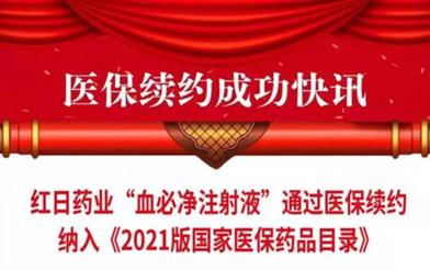 红日药业旗下产品“血必净注射液”通过医保续约纳入《2021版国家医保药品目录》