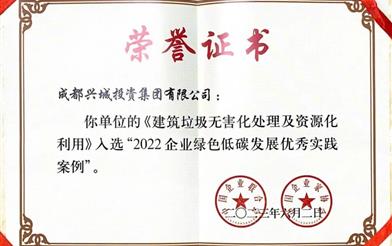 成都兴城集团“建筑垃圾无害化处理及资源化利用”案例成功入选“2022企业绿色低碳发展优秀实践案例”